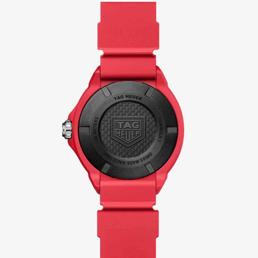 The TAG Heuer Formula 1 Solargraph (38mm) delivers a bold, eye-catching look with its red TH-Polylight case. Designed for daring urban adventures, this exclusive timepiece blends vibrant colors and cutting-edge solar-powered technology, making it a standout in the TAG Heuer Formula 1 collection.